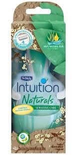 Schick Intuition Naturals Sensitive Care with 100% Natural Aloe lathers and moisturizes while you shave. It uses soothing Vitamin E and 100% all-natural aloe so it’s gentle on your skin and leaves your legs soft and smooth. Because the razor has a built in skin moisturizing solid, there is no need for extra shave gel, soap, or body wash. You can lather and shave all in one step.