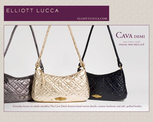 Elliott Lucca’s Cava Demi exudes everyday luxury in subtle metallics featuring hand-woven details, custom hardware and soft, quilted leather. Get your Cava Demi at http://www.elliottlucca.com/Collection_Cava/pl/c/359.html=EM08252010G